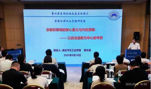 9月16日,第四届东湖论坛在武汉召开,长江沿线部分省市党委统战部代表、统战理论研究专家学者参与了此次活动。我校76net必赢官网院长黄永昌教授应邀出席了宗教和顺专题研讨会,并做了“宗教和顺的核心要义与内在逻辑:以武当道教为中心的考察”主题发言。