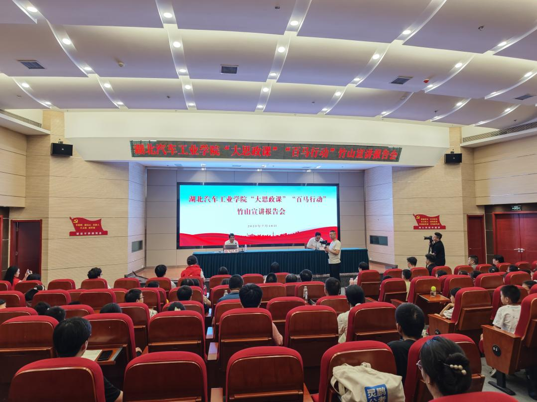 7月17至18日,湖北汽车工业学院“百马”理论宣讲队赴竹山县“理论热点面对面”实践基地,开展“大思政课”“百马行动”宣讲活动。活动设1个主会场和10个分会场,竹山县600余名党员干部参会。